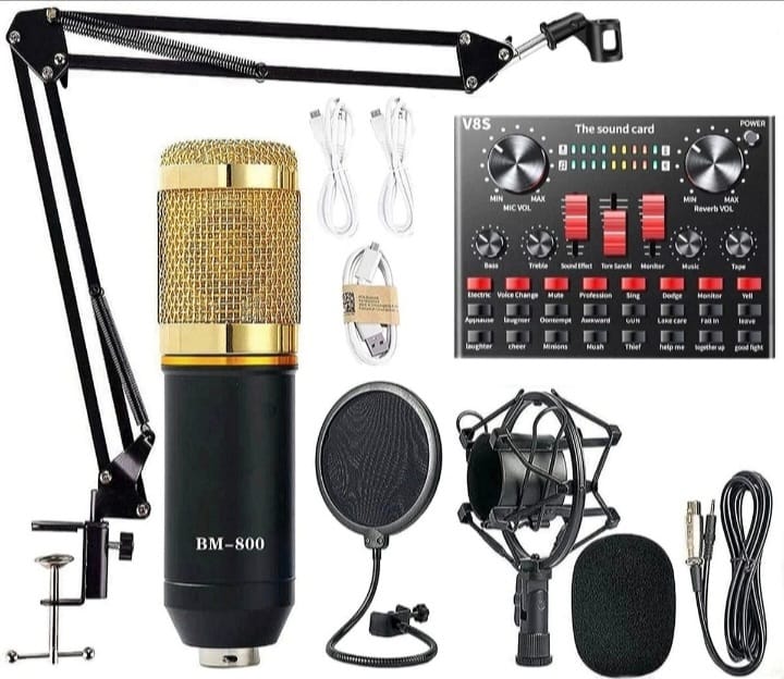 A complete entry-level studio recording setup designed for podcasting, voiceovers, streaming, and music recording. This Professional Studio Kit includes a condenser microphone, adjustable arm stand, pop filter, and an external sound card to help improve audio clarity and minimise background noise. Ideal for beginners and home creators looking for a simple, affordable plug-and-play solution.